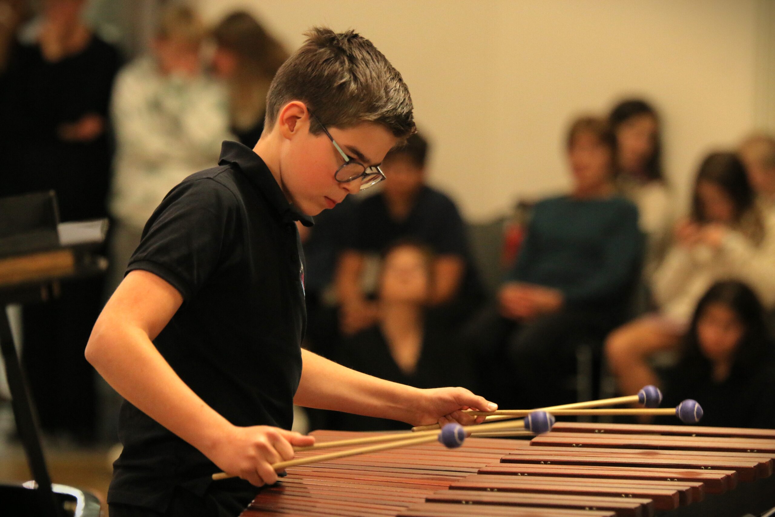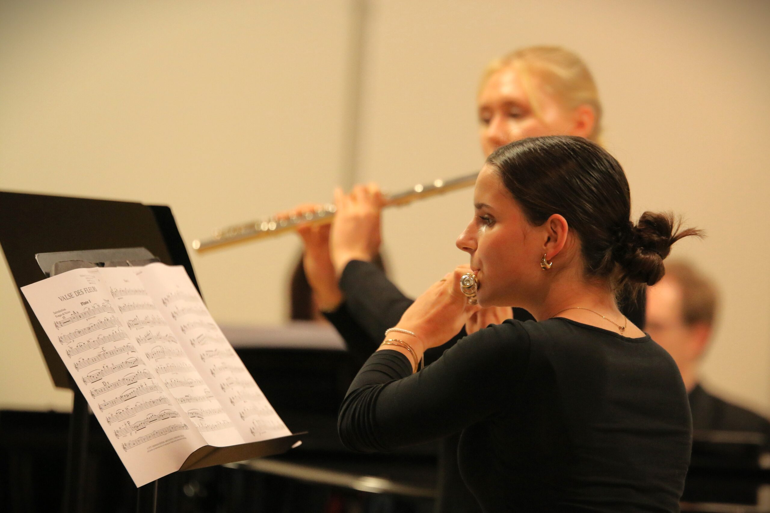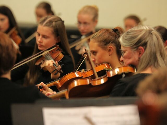 Nach einigen kurzweiligen Beiträgen bescherten unsere jungen Musikerinnen und Musiker dem Publikum viele genussvolle Momente mit durchaus anspruchsvollen Repertoirewerken. Die exzellenten Beiträge aus unterschiedlichen Stilepochen mit Klavier, Geigen, Querflöten, Harfen und Marimba begeisterten die rund 160 Besucherinnen und Besucher. Langanhaltenden Beifall gab es auch für das groß besetzte Sinfonieorchester, das unter anderem mit der Musik zum Film „Polar Express“ schon die Weihnachtszeit anklingen ließ.