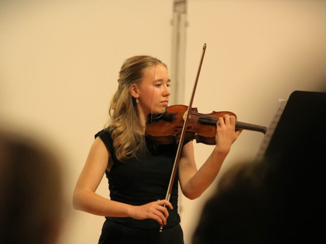 Stimmungsvoll eröffnete die Geigen- und Bratschenklasse von Helene Richter mit einem sommerlichen Abendlied das Konzert im Richard-Wagner-Saal.