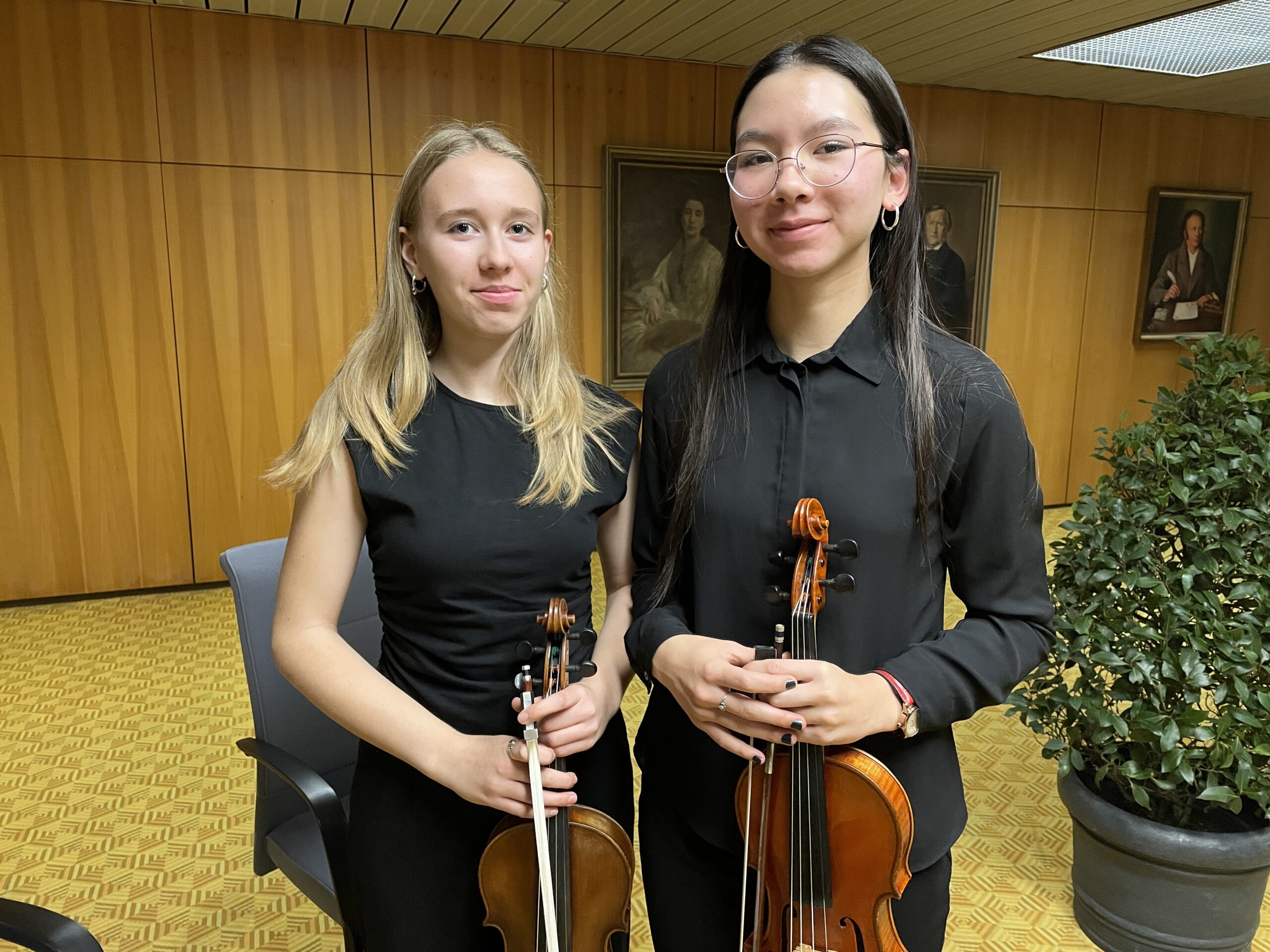 Für die musikalische Ausgestaltung der Feierstunde sorgte das Violinduo Dagny Scheele und Marit Zdralek.