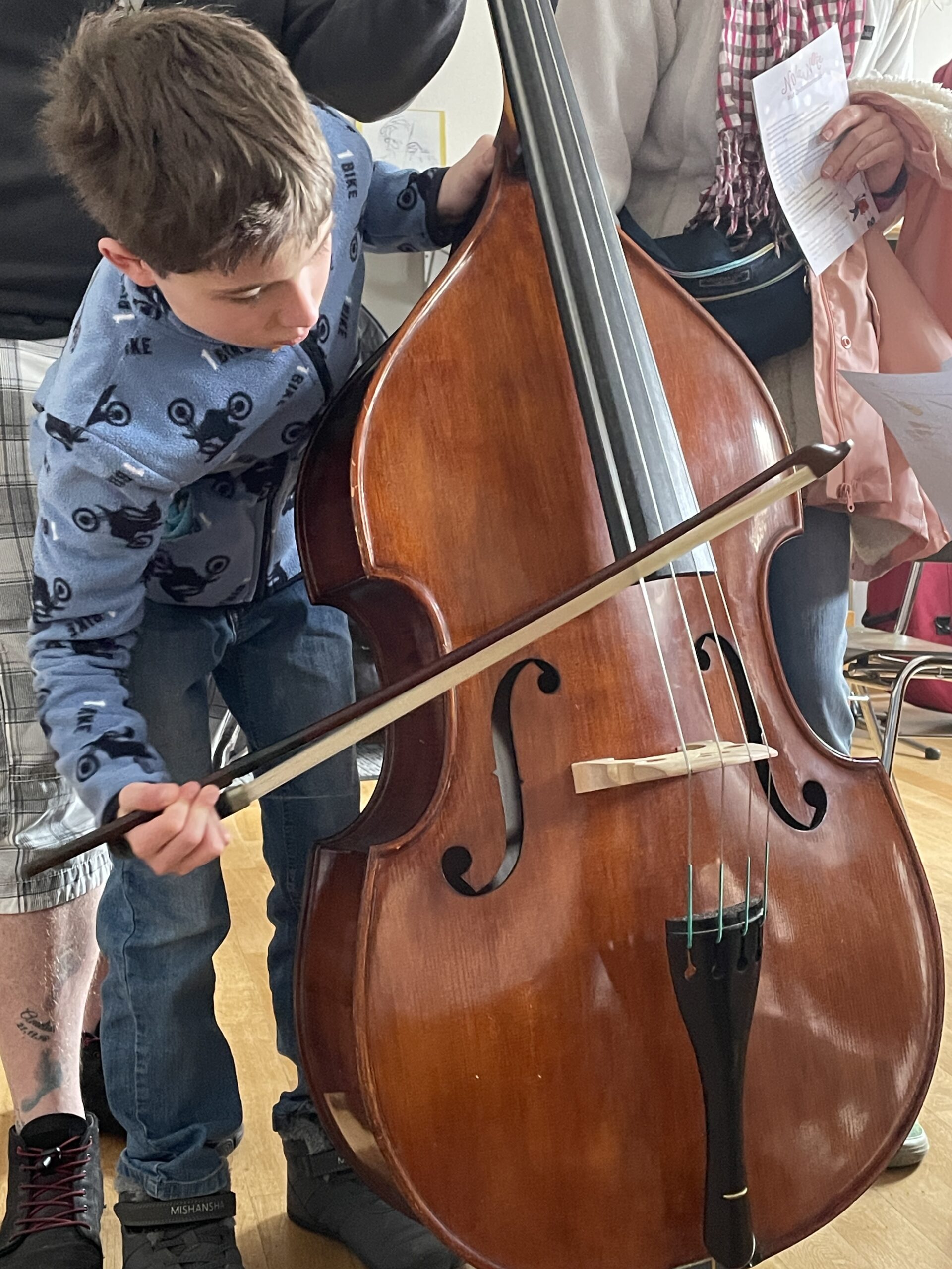 Zum Abschluss probte dann das Vororchester der Städtischen Musikschule. Hier konnten alle Kinder die verschiedenen Orchesterinstrumente noch einmal im Einsatz bewundern und wer wollte, durfte auch das Dirigieren versuchen!